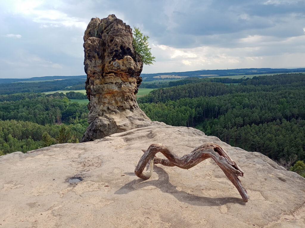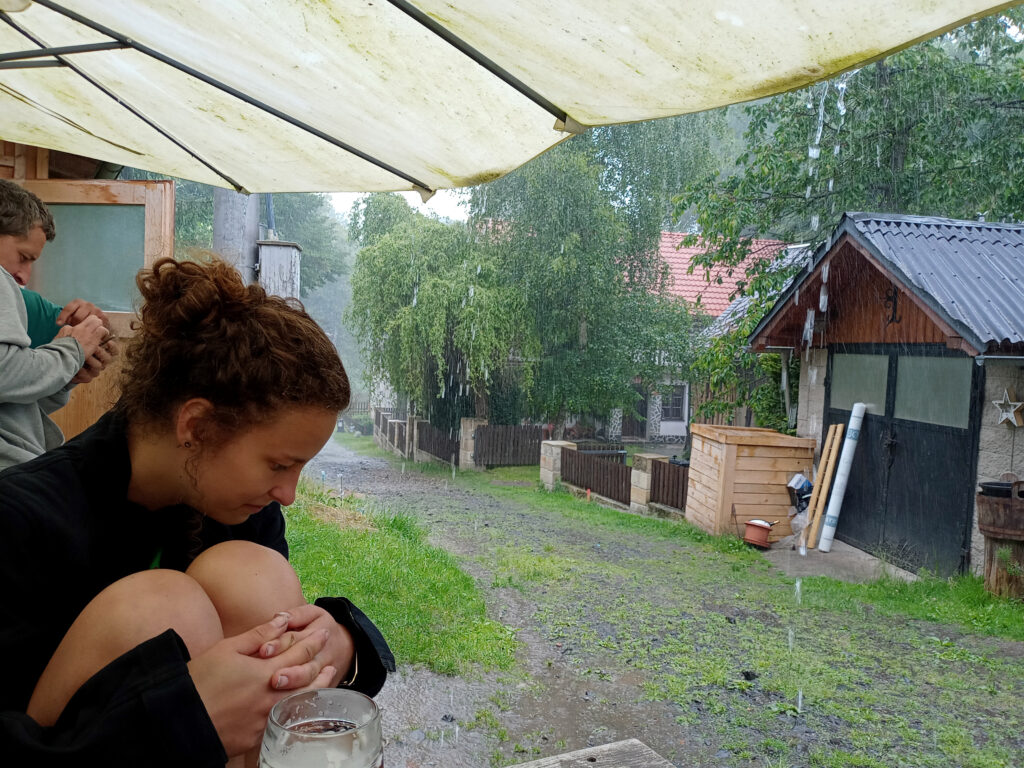 Namísto spaní na torzu mostu zatopeném chebskou přehradou- jsme se vydali na vandrování po kokořínském kraji. V sobotu hrozily bouřky, což nebylo ideální vzhledem k železobetonové konstrukci na vodě. Dobře jsme udělali, protože v sobotu nás vyplavilo několik velkých dešťů. Vždy jsem se ale štěstěnou schovali pod převis či do samoobslužné vinárny/pivotéky. Cestou jsme si četli z Nevrlého a Chálu pohybu od Horníčka.